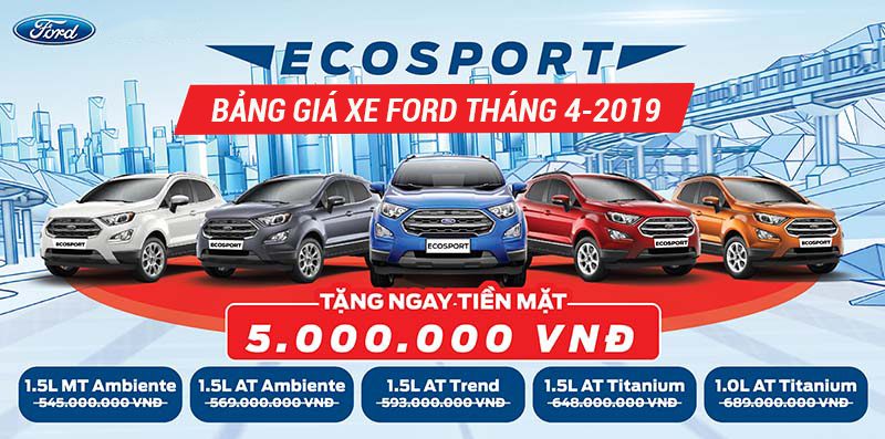 Trong tháng 5-2019, Ford Hà Nội triển khai các chương trình khuyến mãi giảm giá lên tới hàng chục triệu đồng cho các dòng xe bán chạy nhất. Ngoài ra, quý khách hàng còn nhận được các chính sách hỗ trợ phí trước bạ và bộ phụ kiện có giá trị lớn.